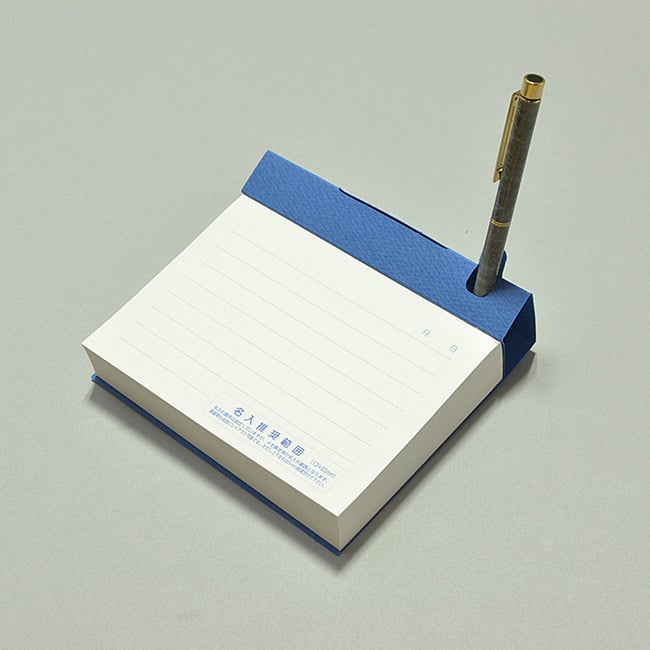 デスクで使うのに最適な幅広タイプ(300ページ)表紙色:ブルー。カードホルダー・ペンホルダー付き。